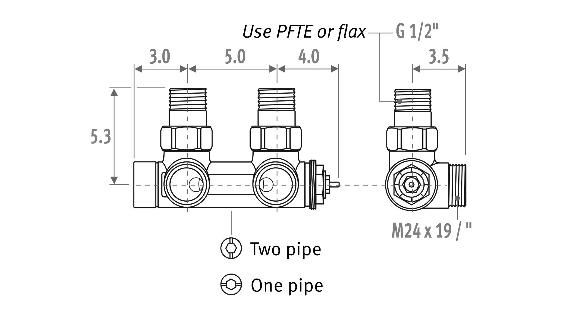 Komplette bestillingssæt med ordrenumre på muffekoblinger i henhold til det anvendte materiale og diameter [Ø] på røret.stålrør til centralvarme Bestillingsnr. Rør [Ø] 501 M24 x 1/2" 503 M24 x 3/8" -
