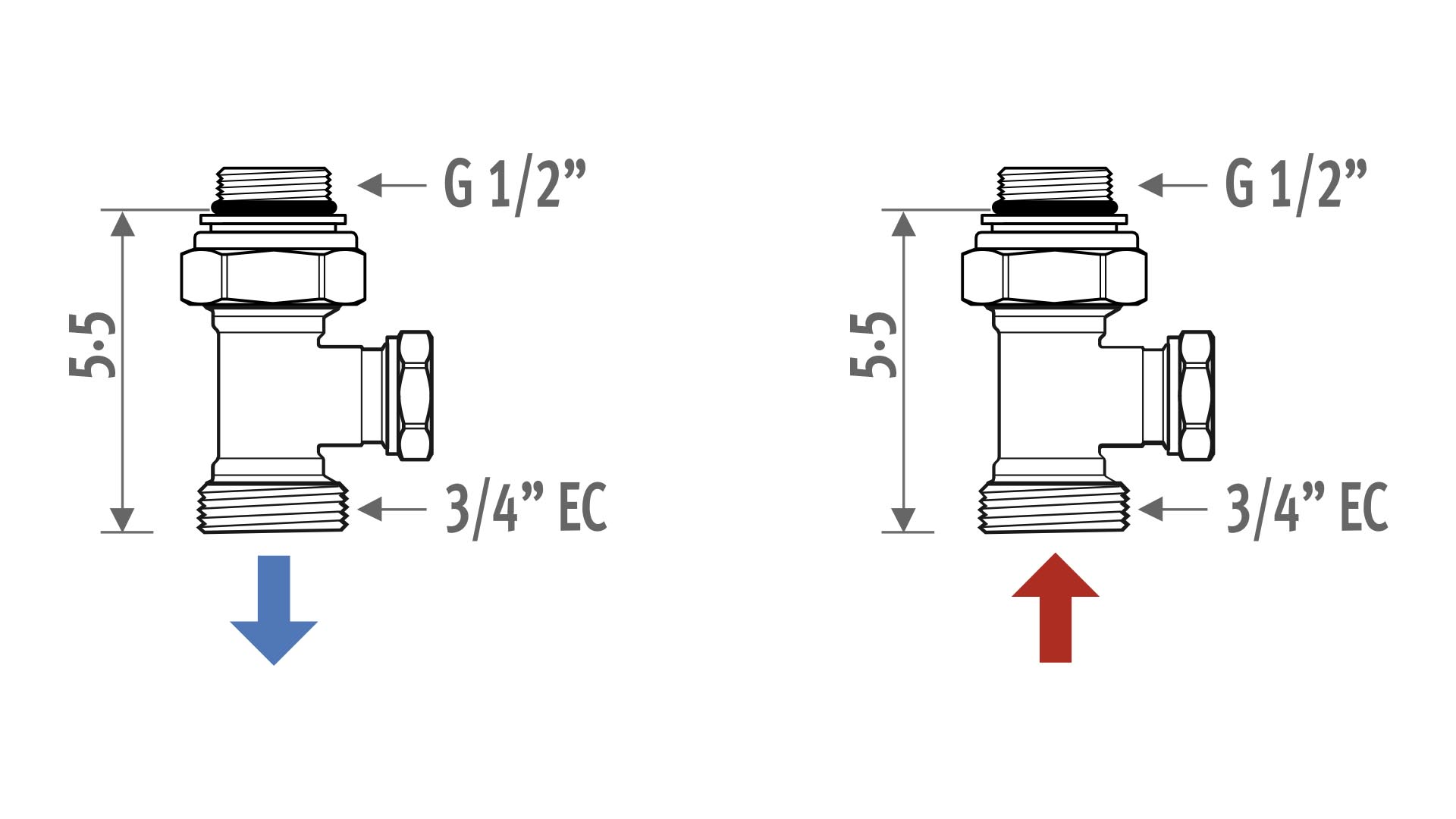 Ventiel, bediening en klemkoppelingen zijn inbegrepen in de prijs